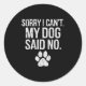 Sorry I Can't My Dog Said No Dog Footprint Runder Aufkleber