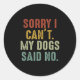Sorry I Can't My Dogs Said No Runder Aufkleber