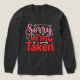 This funny “Sorry I’m Taken” Valentine design features playful typography with hearts, lock and key symbols. Perfect for couples and anyone proudly taken, adding humor and charm to Valentine’s Day gifts and apparel.