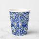 Dieser Papierbecher zeigt eine Masse von elfenbeinfarbenen Nelken und andere verbreitete Blume aus der Hütte, Helterskelter, vor einem mittelblauen Hintergrund, inspiriert von einem Viktorianischen Wallpaper-Design.