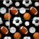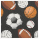 Ein schwarzes Gewebe, das sortierte Sportbälle aller Arten kennzeichnet.