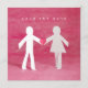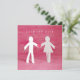 Individuell anpassbare Save the Date Hochzeitsankündigung / Einladung mit ausgeschnittenen Papierfiguren - niedliches Junge und Mädchen mit Händen und Herz auf rosa Hintergrund. Personalisieren Sie es mit Ihren eigenen Informationen oder passen Sie es weiter an, wenn Sie das Layout, den Text und die Farben oder die Einladungsgröße ändern möchten. Es sind auch passende Briefmarke verfügbar.