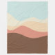 Ein Design aus unregelmäßigen Wellen oder hügeligen Formen, die wie eine Landschaft angeordnet sind, mit einer Progression von Bands, die eine hinter oder auf einer anderen abstrakt mit Farbe und Raum spielen. Das Design erinnert auch sehr an Klang und Musik, mit den wellenartigen Formen und der Harmonisierungsfarben.