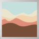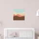 Ein Design aus unregelmäßigen Wellen oder hügeligen Formen, die wie eine Landschaft angeordnet sind, mit einer Progression von Bands, die eine hinter oder auf einer anderen abstrakt mit Farbe und Raum spielen. Das Design erinnert auch sehr an Klang und Musik, mit den wellenartigen Formen und der Harmonisierungsfarben.