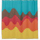 Ein Design aus unregelmäßigen Wellen oder hügeligen Formen, die wie eine Landschaft angeordnet sind, mit einer Progression von Bands, die eine hinter oder auf einer anderen abstrakt mit Farbe und Raum spielen. Das Design erinnert auch sehr an Klang und Musik, mit den wellenartigen Formen und der Harmonisierungsfarben.
