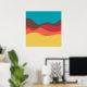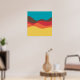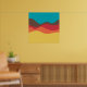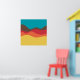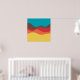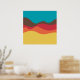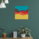 Ein Design aus unregelmäßigen Wellen oder hügeligen Formen, die wie eine Landschaft angeordnet sind, mit einer Progression von Bands, die eine hinter oder auf einer anderen abstrakt mit Farbe und Raum spielen. Das Design erinnert auch sehr an Klang und Musik, mit den wellenartigen Formen und der Harmonisierungsfarben.