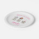 Niedliche Feuerwehrhütte Geburtstagsfeier-Platte mit Aquarellbildern von Dalmatiner-Welpen mit Feuerwehrhelm und rosa Party-Hüten.