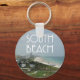South Beach, Miami, Florida Foto Szene des Strandes und ein Teil der Stadt Skyline mit den Worten "South Beach" an der Spitze in einem Art Deko Schriftart Stil.