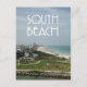 South Beach, Miami, Florida Landschaft Szene des Strandes und Skyline mit den Worten "South Beach" oben in einem Art Deko Schriftart.
