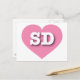 Auf dieser Postkarte befindet sich ein cooles rosa Herz, das die fett weißen Großbuchstaben SD, die offizielle Abkürzung für South Dakota, den Mount Rushmore Staat, enthält. Die Rückseite der Postkarte ist leer und wartet auf Ihren personalisierten Text oder Ihre handgeschriebenen Gefühle.