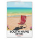 South Hams, Devon, England Beach Travel Poster. Ein devon Postkartenschiff eines gestreiften Liegestuhls an einem Sandstrand.