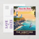 Southampton Save the Date, Reise Postkarte. Leuchtturm an der Küste mit Segelboot auf dem Wasser.