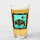Dies ist ein einzigartiges "One of a Kind" Südwest Buffalo Bierglas! Es verfügt über ein südwestliches Buffalo und eine Sonne auf einem türkisfarbenen Hintergrund...Umgeben von einer Südwestgrenze in Türkis, Orange & Schwarz. Original Art Design von Künstler Kerry Miller.