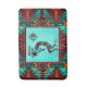 Es besitzt einen Kokopelli, der die Flute spielt und unter der Sonne auf einem türkisfarbenen Hintergrund tanzt...Umgeben von einer Südwestgrenze in Türkis, Orange & Schwarz.