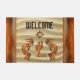 Personalisieren Sie diese einzigartige "Eine von einer Art" Südwest Kokopelli Doormat! Es hat zwei Kupfer Kokopelli, die Flute spielen und um einen Kaktus unter der Sonne auf einem Sandgrund tanzen ...umgeben von einer Kupfergrenze!