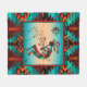 Das ist ein einzigartiges "One of a Kind" im Südwesten von Kokopelli Sherpa Blanket! Es verfügt über ein südwestliches Kokopelli, das die Flute mit Musiknoten spielt und unter der Sonne auf einem türkisfarbenen und orangen Sonnenuntergang tanzt...umgeben von einer Südwestgrenze in Türkis, Orange & Black Original Art Design von Künstler Kerry Miller.
