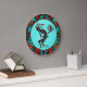 Brighten Sie Ihr Zimmer mit dieser einzigartigen "One of a Kind" Südwest Kokopelli Wall Uhr! Es hat einen Südwesten Kokopelli, der Flute spielt und unter der Sonne auf einem türkisfarbenen Hintergrund tanzt...Umgeben von einer Südwestgrenze in Türkis, Orange & Schwarz. Original Art Design von Künstler Kerry Miller.