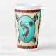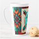 Dies ist eine einzigartige "Eine von einer Art" eine südwestliche Kokopelli Latte Tasse! Es besitzt einen Kokopelli, der die Flute spielt und unter der Sonne auf einem Sandsteinhintergrund tanzt...Umgeben von einer Südwestgrenze in Türkis, Schwarz und Orange Flammen! Original Art Design von Künstler Kerry Miller.
