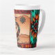 Dies ist eine einzigartige "Eine von einer Art" Südwest Kokopelli Latte Tasse! Es besitzt einen Kokopelli, der die Flute spielt und unter der Sonne in der Wüste tanzt...Umgeben von einer Südwestgrenze in Türkis, Orange & Schwarz.