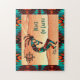 Genießen und personalisieren Sie dieses einzigartige Kokopelli Puzzle im Südwesten! Es besitzt einen südwestlichen Kokopelli, der Flute spielt und unter der Sonne in der Wüste tanzt...Umgeben von einer Südwestgrenze in Türkis, Orange & Schwarz. "Weltfrieden"! Dies ist ein originelles "One of a Art" Art Design von Künstler Kerry Miller.