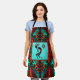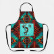 Dies ist eine einzigartige "Eine von einer Art" südwestliche Kokopelli-Schürze! Es ist ein südwestliches Kokopelli, das tanzt und die Flute unter der Sonne auf einem türkisfarbenen Hintergrund spielt...umgeben von einer Grenze in Türkis, Orange und Schwarz! Dies ist ein Original Art Design von Künstler Kerry Miller.