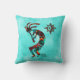 Brighten Sie Ihre Zuhause mit dem einzigartigen "One of a Kind" Südwest Kokopelli Kissen! Es hat einen Südwesten Kokopelli, der Flute spielt und unter der Sonne auf einem türkisfarbenen und weißen Hintergrund tanzt! Dieses Kokopelli Kissen im Südwesten hat ein passendes Kokopelli Fleece Blanket! Dies ist ein Original Art Design von Künstler Kerry Miller.