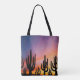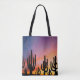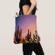 Tote Bag all over print shoulder style fashion statement stylish storage accessory printed with a Southwestern Desert Landscape Cactus Sunrise Image mixed media graphic art design illustration by TheFabricSeal at Zazzle #ZazzleMade https://www.zazzle.com/store/thefabricseal