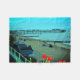 Nachtfischen am Strand von Southwold mit roten Mohnchen im Vordergrund und Seepferdchen im Hintergrund.