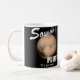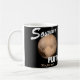 Das neue Horizons-Foto des Zwergplaneten Pluto mit den Worten "Souvenir of PLUTO - Es ist weit weg!" in Typografie, die an den Kitsch am Straßenrand des 20. Jahrhunderts erinnert.