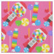 Wenn Sie Liebe die Süßigkeit, die Sie Liebe dieser Spaß werden, buntes soviel Süßigkeitsgewebe, das voll einen rosa Hintergrund mit einer gumball Maschine von gumballs kennzeichnen, Starlightstrudelsüßigkeiten, Lutscher und eingewickelte Rollensüßigkeiten in den hellen Farben!