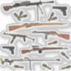 Ein zeichnend Vektor mit sowjetischen WW2-Gewehren, automatischen und AT-Waffen, Pistolen und Maschinengewehren. Dort finden Sie: - PP-41 Untermaschinengewehr; - Gewehr Mosin-Nagant; - Maschinengewehr Degtyaryov DP-27; - Untermaschinengewehr PPS-43; - Pistole Tokarev T-33; - Gewehre Tokarev SVT-40; - PTRD-41 Anti-Panzer; - RGD-4 3 Handgranaten.