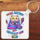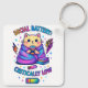 Lebhaftes, buntes Design mit einer gemütlichen Katze in einer Decke verpackt, neben einem Stapel Bücher sitzen und Kaffee trinken. Der farbige Text lautet: "Soziale Batterie kritisch niedrig". Dieses Design ist auf einer Vielzahl von Produkten erhältlich.