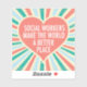 Sozialarbeiter machen die Welt zu einem besseren Ort. Ein schöner, inspirierender Sozialaufkleber für einen Sozialdienstleister mit hübschem Retro-Herz und fröhlichen Farben.