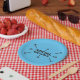 Soziale Distanz moderne Typografie Himmel blau lus Pappteller