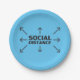 Social Distance moderne Typografie Himmel blau lustige Party Paper Teller. Schwarzer Text und Pfeile auf himmelblau schlichte solide bearbeitbare Farbe Hintergrund.