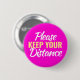 Helfen Sie Freunden und Familie daran zu erinnern, mindestens 1,5 m bis 2 m oder 1,6 ft weit weg von der Gesellschaft behalten, um die Verbreitung des Virus zu verhindern. Stoppen Sie, dass andere zu nah mit diesem Button-Button-Abzeichen, dass liest behalt bitte Ihre Entfernung in hellrosa, gelb und weiß. Design: www.mylittleeden.com