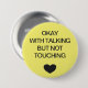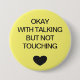 Soziale Distanzierung farbkodierten gelben Knopf, um Ihnen zu helfen, sich sicher und komfortabel mit Ihren sozialen Interaktionen und lass anderen wissen, mit welchem Niveau der sozialen Distanzierung Sie sich wohl. Der anpassbare Text lautet "OKAY WITH TALKING, ABER NOT TOUCHING". In meiner Sammlung "Soziale Distanz, Gesichtsmaske und Sanierungsstationen" sind passende Artikel und Unterrichtszeichen verfügbar. Für weitere Personalisierungen oder Sonderanfertigungen, kontaktieren Sie mich bitte unter acherryonthecake@hotmail.com (bitte 1-2 Arbeitstage).