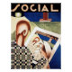 Das Vintage Magazin Cover of Social zeigt einen modischen jungen Mann, der als Grafikdesigner auf dem Cover arbeitet, auf dem er erscheint. Die Soziale war eine der wichtigsten Zeitschriften in Kuba in der frühen Hälfte des 20. Jahrhunderts. Mit dieser Zeitschrift wurde Kuba der Art-Déco-Bewegung vorgestellt.