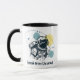 Diese Retro-futuristische Kaffeemaschine Tasse besticht durch einen Vintagen Raumfahrer, der an das goldene Zeitalter der Weltraumforschung erinnert. Der Slogan "Break from the Grind" ermutigt die Zuschauer, groß zu träumen und sich eine Zukunft mit unendlichen Möglichkeiten vorzustellen.