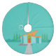 Dieses Space Age Cartoon House Weihnachtsbaumrock ist ein Retro-Liebhabertraum. Das minimalistische Design der Kunst besticht durch ein Aqua-Stein-Haus mit großen, Pfauenblauen Fenstern. An der atomaren, schrägen, orangefarbenen Decke hängt eine gelbe Sputnikleuchte, die die Eingangstür beleuchtet. Die rote Vordertür mit Türknauf aus Sternexplosion wird durch die senkrechten grünen Holzplanken des Eingangs schön verdeckt. Ein Weg aus grauem Stein führt über den unberührten Rasen, der im Mondschein türkisfarben erscheint. Hinter dem Haus ragt eine große, dünne Baumreihe zum türkisblauen Himmel und zur weißen Silhouette eines Vollmonds. Obwohl keine Menschen sichtbar sind, schauen sich die Einwohner des Kitschhauses in einer Nacht wie dieser wohl die Nachrichten der Astronauten an.
