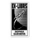 Ein Ex-Libris-Design mit einem Holzschnitt-/Linokut-Motiv, das eine Rakete darstellt, die einen Planeten umkreist. Inspiriert durch sowjetische Bilder der Weltraumforschung aus dem 50er und dem 60er