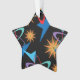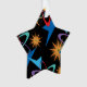 Dieses lustige und farbenfrohe Muster ist ein Update der klassischen Motive des Mitteljahrhunderts, des Neuen Atomzeitalters der 1950er und 1960er Jahre mit abstrakten Umlaufsphären, Raketenschiffen und farbenfrohen Sternexplosionen.