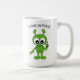 Aus dieser Welt Kaffee-Tasse mit einer niedlichen Grünflächen-Alien, die das Friedenszeichen mit einer "I Come In Peace"-Beschriftung blinkt.