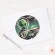 Space Alien with Birthday Cake UFO Flying Saucer Runder Aufkleber