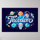 Eine wunderschöne Wandkunst mit bezaubernden Planeten, Astronauten und himmlischen Wundern, die den Namen Theodore tragen. Ideal für Zimmer, Kinderzimmer oder ein Zimmer für alle Liebhaber des Weltraums. ✨ Andere Namen auf Anfrage erhältlich!