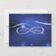 "Die Weltraumgalaxie verkörpert unendliche Symbolskripte." Matching UAWG Response Cards für Ihre Gäste per Post. Eine dunkelblaue Galaxie mit funkelnden Sternen wird mit einer weißen, handgeschriebenen Kalligraphie-Typografie mit dem Wort Liebe und einem Unendlichkeitssymbol und wirbelnden Schnörkeln vermischt. Grafisch entworfen von Audrey Jeanne Roberts, einem international lizenzierten Künstler und Designer, Urheberrecht.