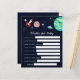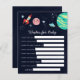 Niedliches Thema Babydusche Wünsche für die Babykarte. Illustration einer Galaxie - Rakete, Sterne, Planeten. Die perfekte Aktivität, um während der Dusche zu spielen, und das ist sicherlich ein toller Genuss!