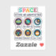 Playful space themed artwork made for curious kids and young students. Cute symbols like UFO, planet, moon, stars, rocket and alien help children explore space science and basic astronomy in a fun and friendly way.