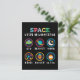Playful space themed artwork made for curious kids and young students. Cute symbols like UFO, planet, moon, stars, rocket and alien help children explore space science and basic astronomy in a fun and friendly way.