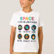 Playful space themed artwork made for curious kids and young students. Cute symbols like UFO, planet, moon, stars, rocket and alien help children explore space science and basic astronomy in a fun and friendly way.